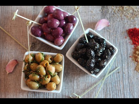 Pour un apéritif parfumé ou pour argumenter une salade voila 3 idées simples pour faire des olives marinées. A préparer au minimum 2 heures avant le moment de les servir , S’il vous en reste vous pouvez les conserver au frigo dans un bocal en verre bien fermé.